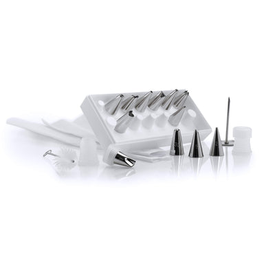A premium deluxe icing set comprising of a large capacity piping bag, a selection of 12 different nozzles, nozzle cleaner, two couplers and a clea...