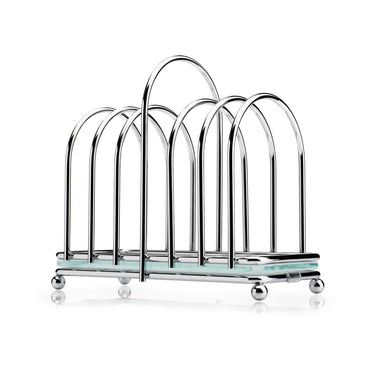 A contemporary styled toast rack, with ball feet, carry handle and TOAST letter design. Holds up to 4 slices of toast. Finished is durable bright ...