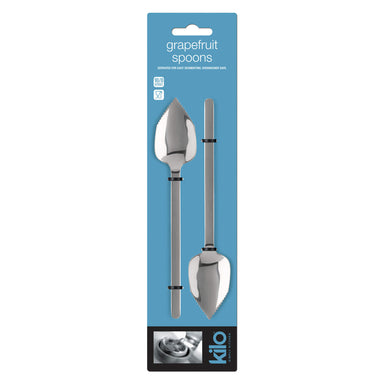 A set of two professional Kilo grapefruit spoons, made from high quality polished stainless steel. Features a serrated edge for easy cutting of th...